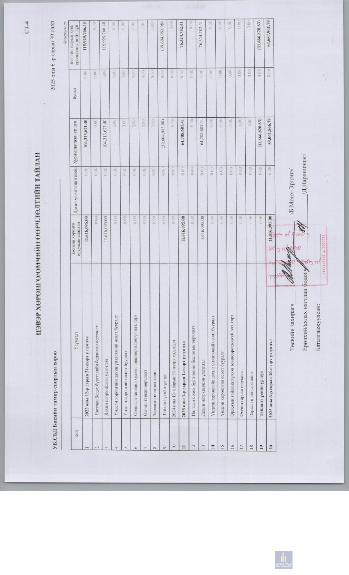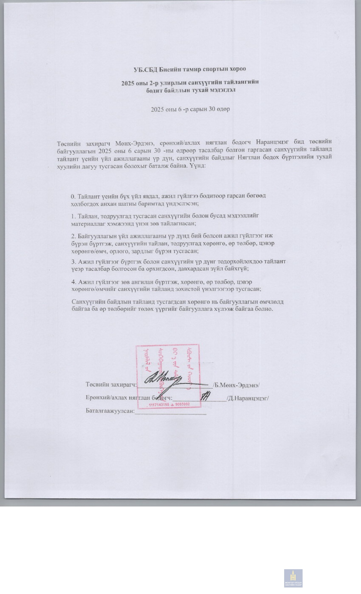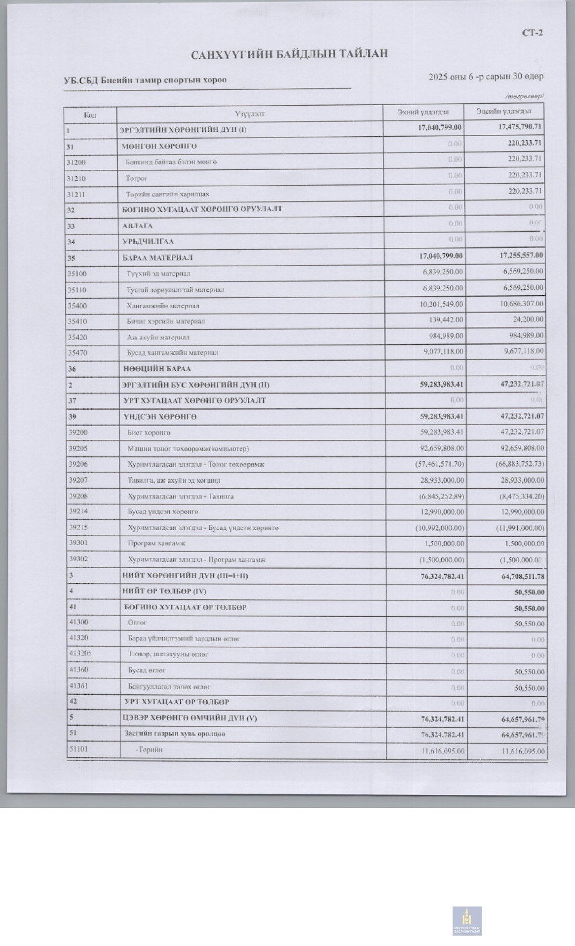 2025 ОНЫ ТӨСВИЙН ТӨСӨЛ