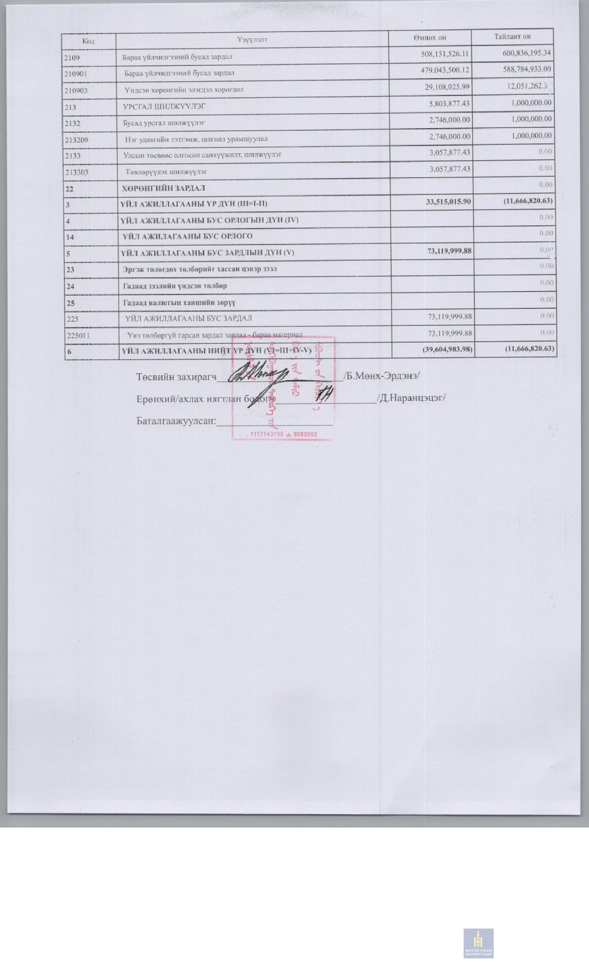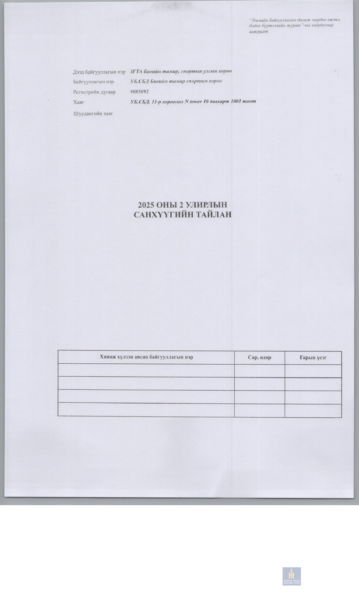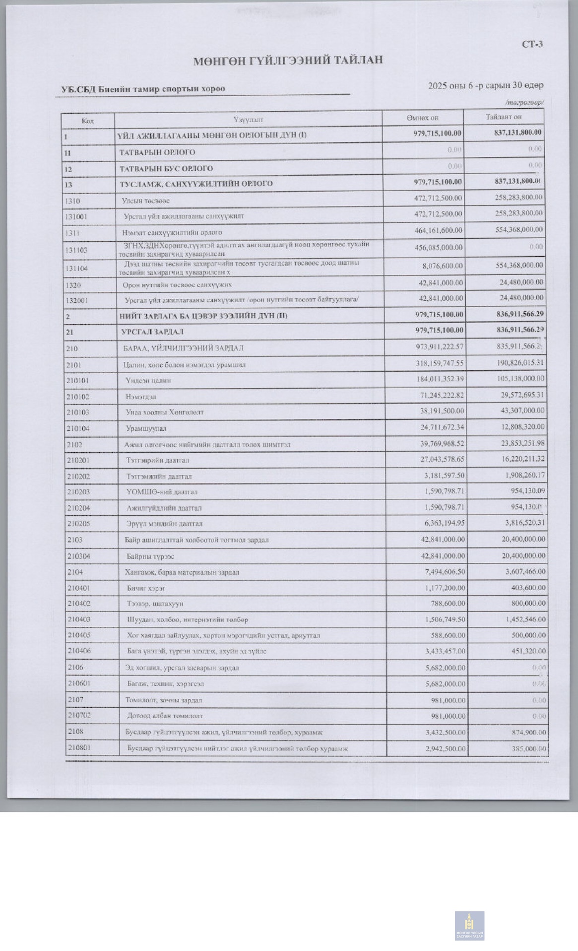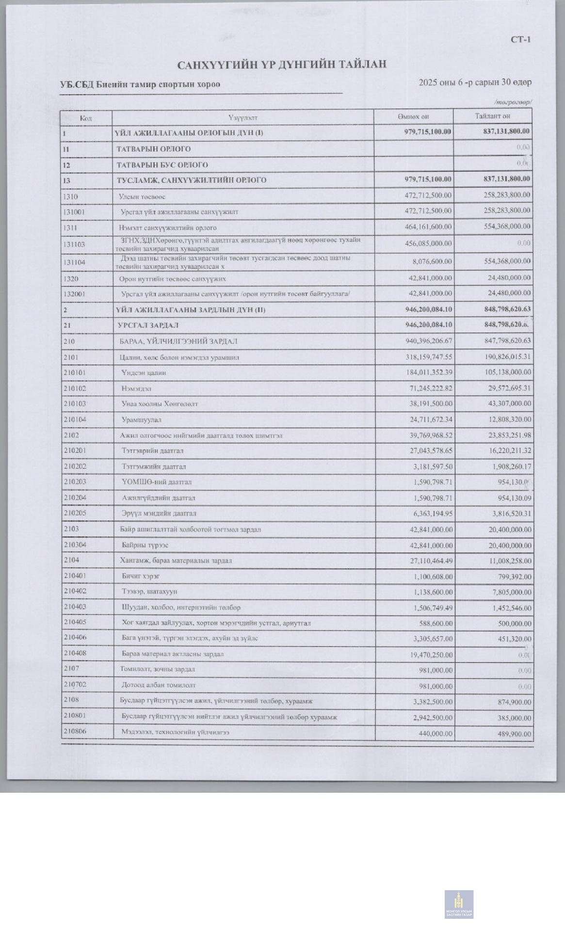 2025 ОНЫ ТӨСВИЙН ТӨСӨЛ