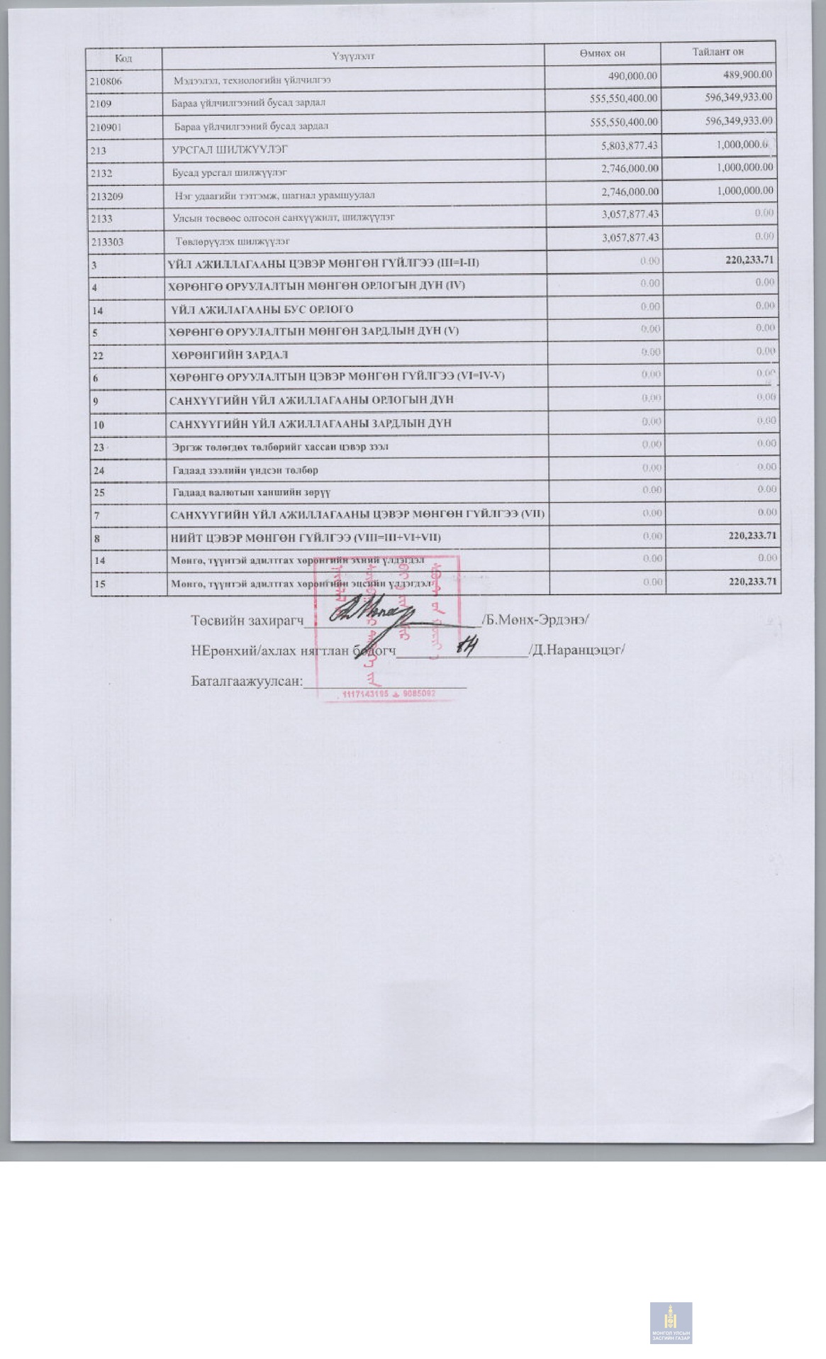 ТӨСВИЙН ГҮЙЦЭТГЭЛ