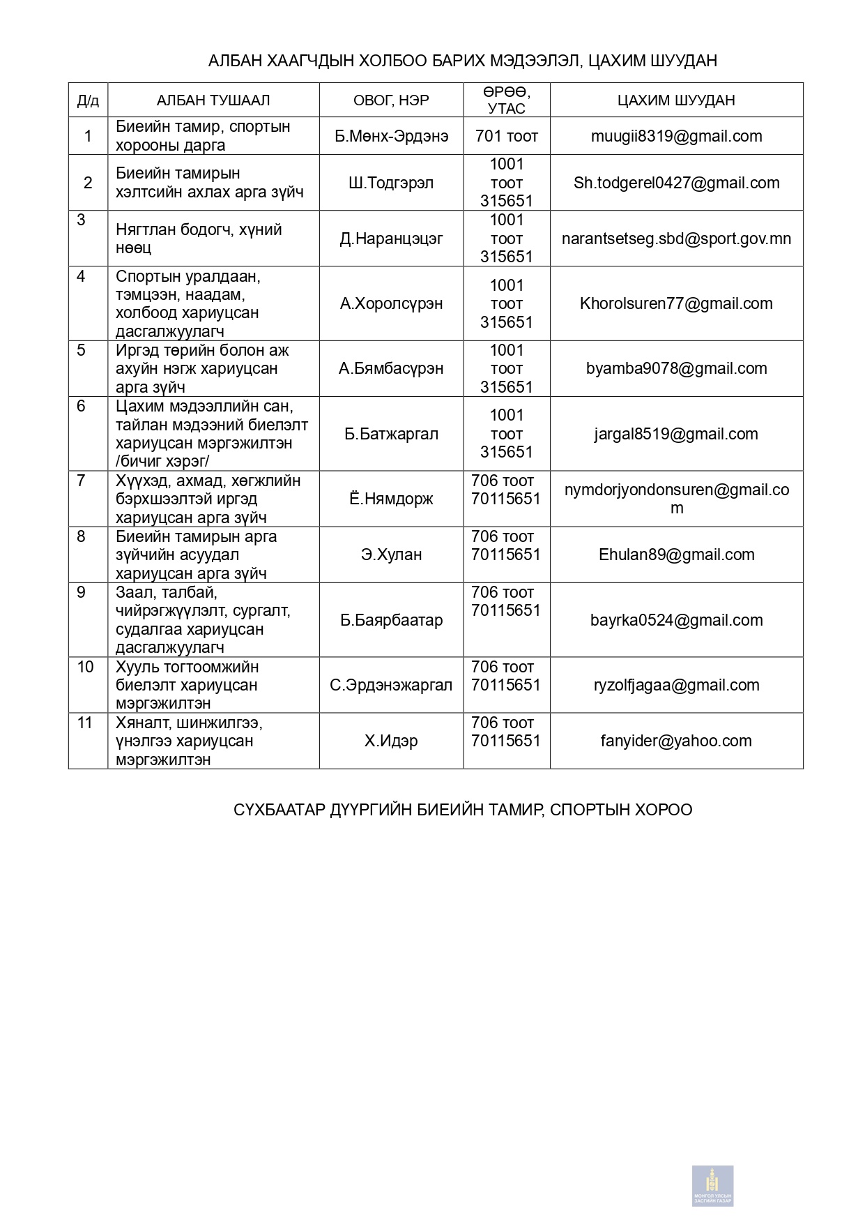 ТӨРӨӨС БИЕИЙН ТАМИР, СПОРТЫН ТАЛААР БАРИМТЛАХ БОДЛОГО